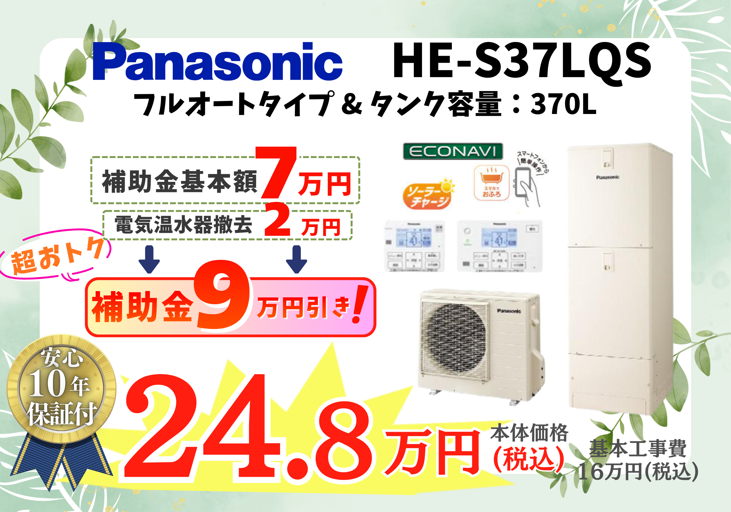 | 商品名 | ②Panasonic エコキュート 370L フルオートタイプ |